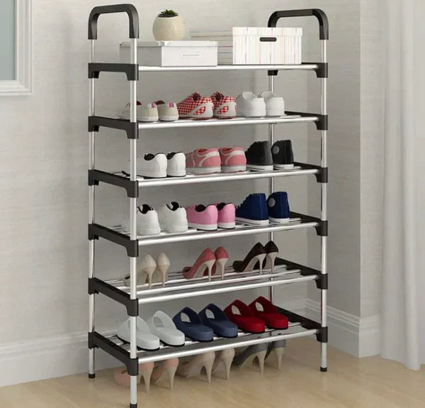 Premium 5 Tier Classic Stainless Steel Shoe Rack, Stackable Multilayer Shoe Organizer Shelf for Entryway